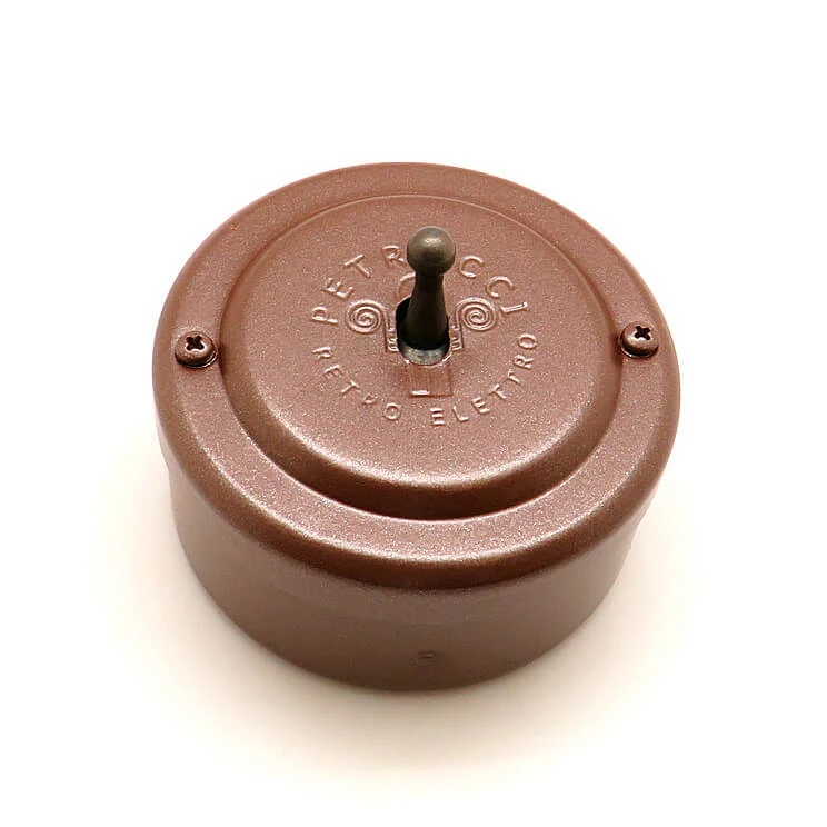 Ретро выключатель 302VSA Petrucci цвет коричневый прекрасно подходит для винтажных интерьеров и лофт пространств. Выключатель тумблерный 302VSA Petrucci отличного качества, он разработан с учётом всех современных требований, стандартов и ГОСТов.