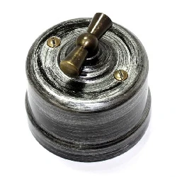 Ретро выключатель пластиковый ФД КерамикЪ цвет серая патина прекрасно подходит для современных интерьерных решений. Винтажный выключатель ФД КерамикЪ VK2RO027b отменного качества. Он разработан с учётом всех современных требований, стандартов и ГОСТов.Так как серая патина - один из самых популярных цветов. Поэтому не удивительно, что такой ретро выключатель наиболее часто используется дизайнерами, как при классических интерьерных решениях, так и в стилях лофт, стимпанк, эко. Данный ретро выключатель прекрасно сочетается в комплектации с интерьерными ретро проводами, наружными латунными трубками или даже с внутренней скрытой проводкой. Выключатель ФД КерамикЪ цвета серая патина выполнен из высокопрочного пластика, что позволяет смело использовать его при открытой проводке.