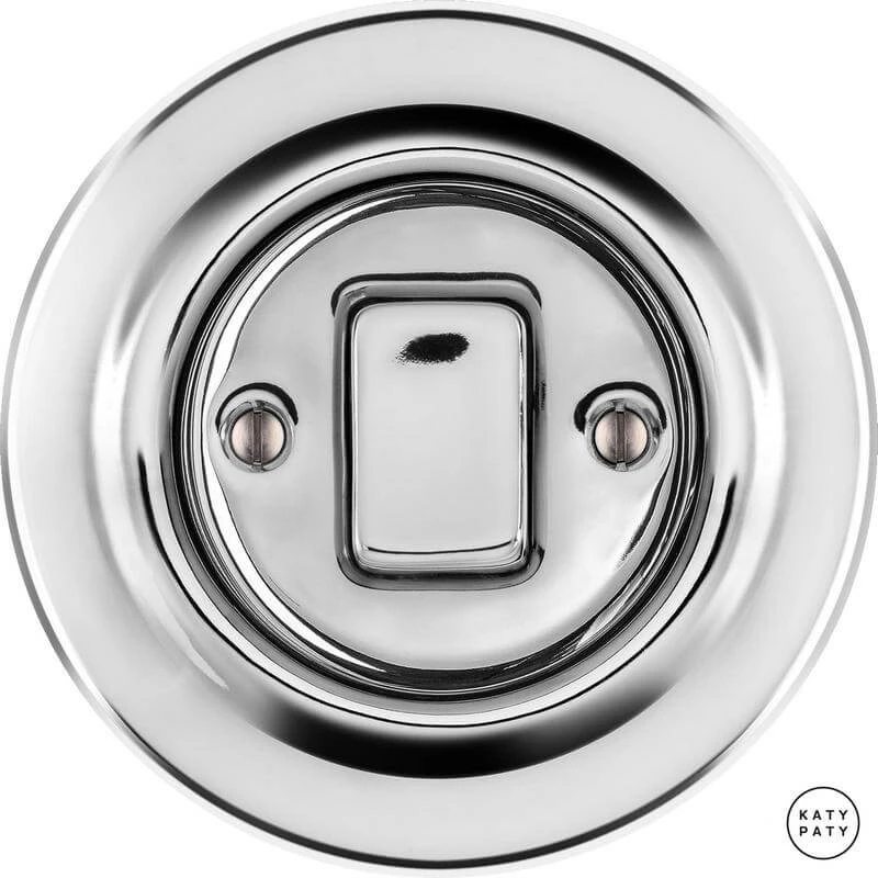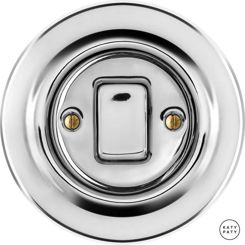 Ретро выключатель OPARGW1 цвет серебряный глянцевый от чешского бренда Katy Paty изготовлен вручную из фарфора. Данная модель выглядит презентабельно и отлично дополнит интерьер как в современном, так и в ретро стиле. Дизайнерский выключатель Katy Paty отличается функциональностью и простотой в использовании. Данная модель разработана с учётом всех современных требований и соответствует европейским стандартам.Винтажный выключатель OPARGW1 цвет серебряный глянцевый прекрасно сочетается в комплектации с электротоварами для скрытого монтажа. Модель идёт в комплекте с фарфоровой рамкой, шурупы представлены в четырёх цветах на выбор: нержавейка, черный, серебро, латунь.