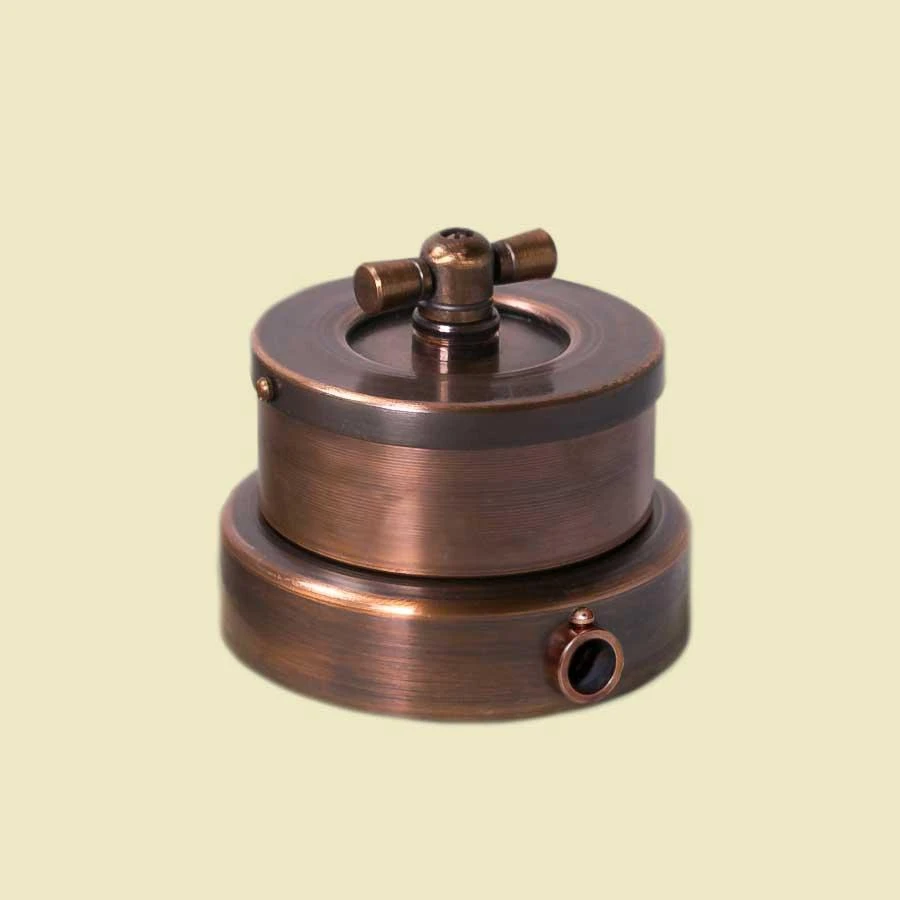 Ретро выключатели для открытой проводки ТМ "Роматти" серии Лонжин c артикульным номером L143-5-12 изготавливаются индивидуально для Вашего проекта из благородной латуни или аутентичной меди.