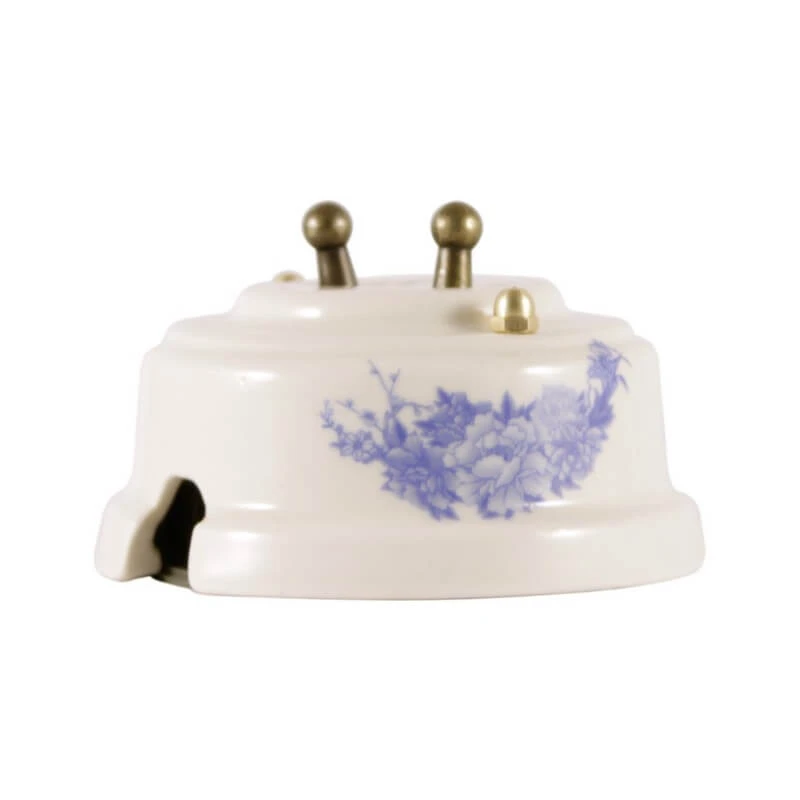 Ретро выключатель ЛЕАНЗА ВР2ВБ синие цветы представляет отличное решение для современных интерьеров. Данная модель выключателя особенно популярна в интерьерах в стилях лофт, стимпанк и минимализм. Выключатель ЛЕАНЗА отвечает всем необходимым стандартам и ГОСТам, имеет высочайшее качество, подтверждённое сертификатами соответствия.Человек с чувством вкуса при выборе электрики не пройдёт без интереса мимо ретро выключателей LEANZA. Винтажный синие цветы выключатель отлично сочетается в комплектации с наружной ретро проводкой, ретро изоляторами и распаечной коробкой.Таким образом, приобретая комплект ретро электрики Вы получаете не только электрификацию Вашего дома, но и отличное декоративное решение!