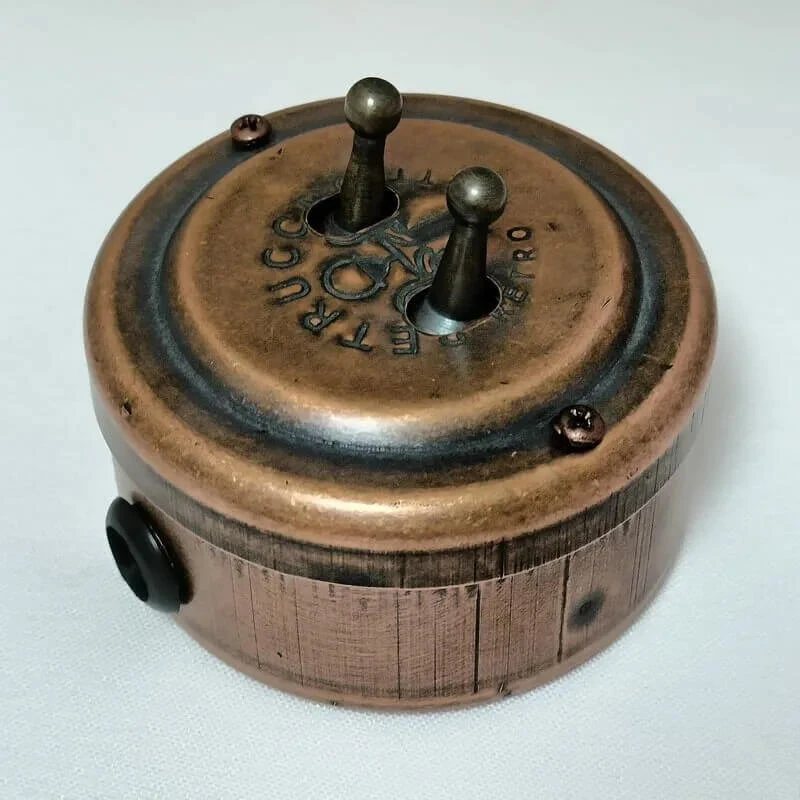 Данный ретро выключатель прекрасно сочетается в комплектации с проводами, изоляторами, розетками и распределительными коробками. Выключатель Petrucci цвет старая медь выполнен в ретро стиле, что придает такому интерьерному аксессуару особый шарм!