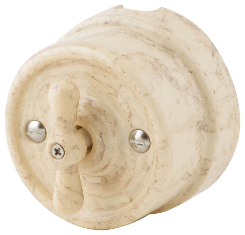 Ретро выключатель Werkel a036794-СМ светлый мрамор представляет отличное решение для современных интерьеров. Данная модель выключателя особенно популярна в интерьерах в стилях лофт, стимпанк и минимализм. Выключатель Werkel отвечает всем необходимым стандартам и ГОСТам, имеет высочайшее качество, подтверждённое сертификатами соответствия.Человек с чувством вкуса при выборе электрики не пройдёт без интереса мимо ретро выключателей Werkel. Винтажный светлый мрамор выключатель отлично сочетается в комплектации с наружной ретро проводкой, ретро изоляторами и распаечной коробкой.Таким образом, приобретая комплект ретро электрики Вы получаете не только электрификацию Вашего дома, но и отличное декоративное решение!