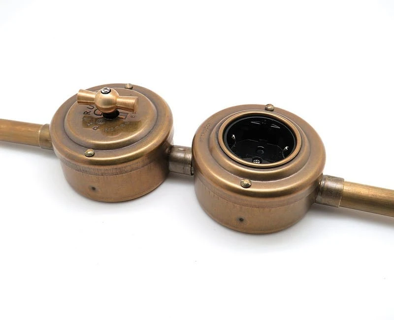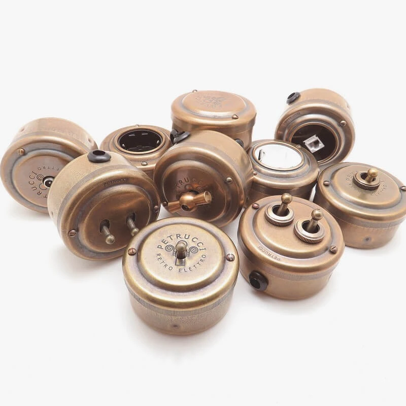 Данный ретро выключатель прекрасно сочетается в комплектации с проводами, изоляторами, розетками и распределительными коробками. Выключатель Petrucci цвет бронза выполнен в ретро стиле, что придает такому интерьерному аксессуару особый шарм!