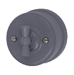 Ретро выключатель пластиковый BIRONI цвет титан прекрасно подходит для современных интерьерных решений. Винтажный выключатель BIRONI B1-202-26 отменного качества. Он разработан с учётом всех современных требований, стандартов и ГОСТов.Так как титан - один из самых популярных цветов. Поэтому не удивительно, что такой ретро выключатель наиболее часто используется дизайнерами, как при классических интерьерных решениях, так и в стилях лофт, стимпанк, эко. Данный ретро выключатель прекрасно сочетается в комплектации с интерьерными ретро проводами, наружными латунными трубками или даже с внутренней скрытой проводкой. Выключатель BIRONI цвета титан выполнен из высокопрочного пластика, что позволяет смело использовать его при открытой проводке.
