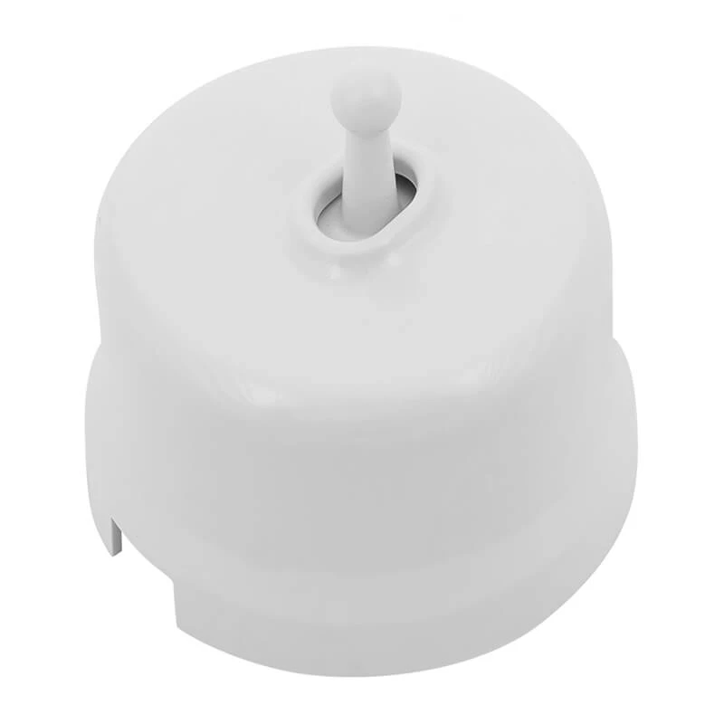 Ретро выключатель Jantera цвет белый прекрасно подходит для современных интерьеров. Винтажный выключатель Jantera JRE.0T21.PG00 отличного качества. Он разработан с учётом всех современных требований, стандартов и ГОСТов.Так как белый - популярный цвет. Не удивительно, что данный ретро выключатель часто используется дизайнерами, как при классических интерьерных решениях, так и в стилях лофт, стимпанк, эко.Ретро выключатель прекрасно сочетается в комплектации с интерьерными ретро проводами, наружными латунными трубками или даже с внутренней скрытой проводкой. Выключатель Jantera цвета белый выполнен из пластика, что придает такому интерьерному аксессуару особую лёгкость и шарм!
