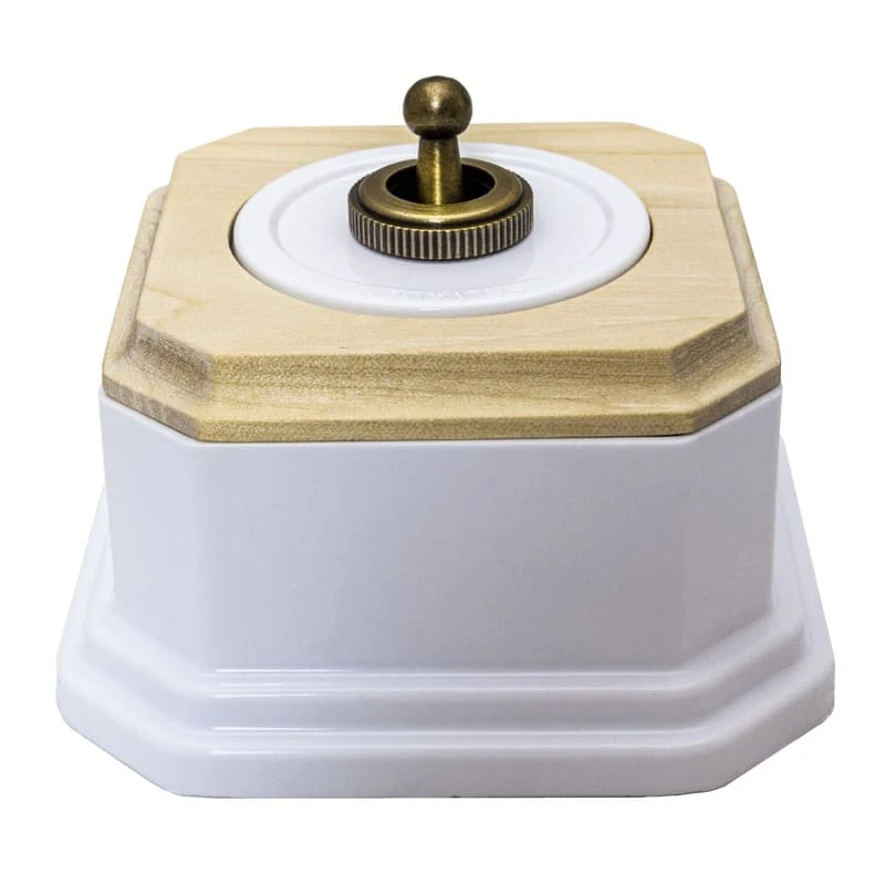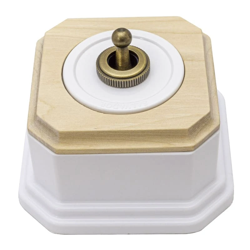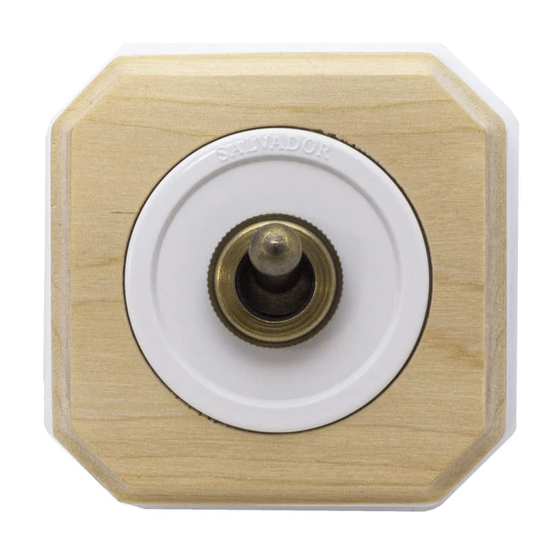 Выключатель Salvador PL41.2WT.NK с деревянной рамкой - отличное решение для современных интерьеров. Данная модель выключателя особенно популярна в интерьерах в стилях лофт и стимпанк. Выключатель Сальвадор отвечает всем необходимым стандартам и ГОСТам, имеет сертификат качества.Человек с чувством вкуса при выборе электрики не пройдёт без интереса мимо ретро выключателей Сальвадор. Винтажный выключатель с деревянной рамкой отлично сочетается в комплектации с наружной ретро проводкой, ретро изоляторами и распаечной коробкой.Таким образом, приобретая комплект ретро электрики Вы получаете не только электрификацию Вашего дома, но и отличное декоративное решение!