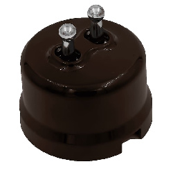 Ретро выключатель пластиковый BIRONI цвет коричневый прекрасно подходит для современных интерьерных решений. Винтажный выключатель BIRONI B1-231-22-S отменного качества. Он разработан с учётом всех современных требований, стандартов и ГОСТов.Так как коричневый - один из самых популярных цветов. Поэтому не удивительно, что такой ретро выключатель наиболее часто используется дизайнерами, как при классических интерьерных решениях, так и в стилях лофт, стимпанк, эко. Данный ретро выключатель прекрасно сочетается в комплектации с интерьерными ретро проводами, наружными латунными трубками или даже с внутренней скрытой проводкой. Выключатель BIRONI цвета коричневый выполнен из высокопрочного пластика, что позволяет смело использовать его при открытой проводке.