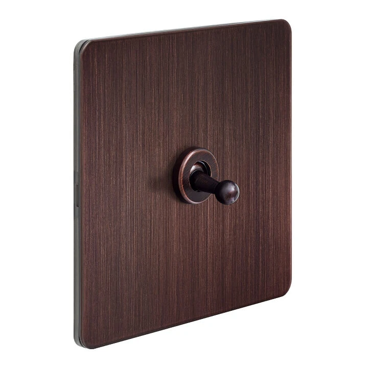 Ретро выключатель T&J Electric цвет Шоколадный кашемир выполнен из прочного и качественного металла. Выключатель тумблерный G2130A-86-BZ T&J Electric отличного качества, он разработан с учётом всех современных требований и стандартов. Дизайнерский выключатель прекрасно будет смотреться как в классических и винтажных пространствах, так и в современных интерьерах. Выключатель T&J Electric цвет Шоколадный кашемир выполнен в ретро стиле, что придает такому интерьерному аксессуару особый шарм!