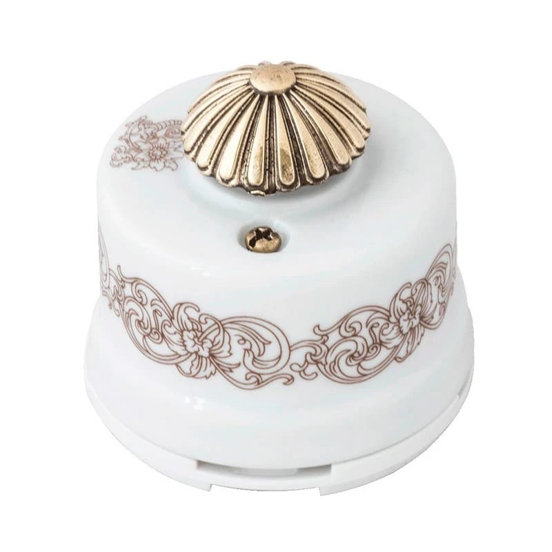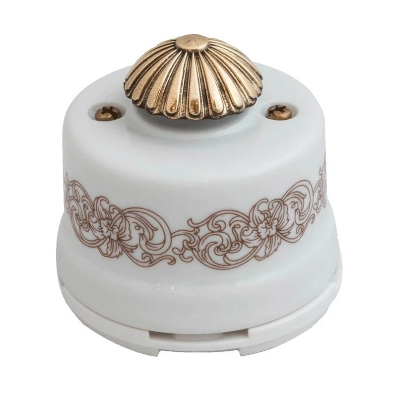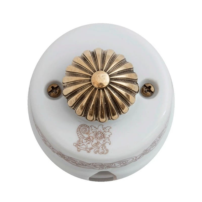 Белый с узором ретро выключатель Salvador OPDMUZ представляет отличное решение для современных интерьеров. Данная модель выключателя особенно популярна в интерьерах в стилях лофт, стимпанк и минимализм. Выключатель Сальвадор отвечает всем необходимым стандартам и ГОСТам, имеет сертификат качества.Человек с чувством вкуса при выборе электрики не пройдёт без интереса мимо ретро выключателей Сальвадор. Белый с орнаментом винтажный выключатель отлично сочетается в комплектации с наружной ретро проводкой, ретро изоляторами и распаечной коробкой.Таким образом, приобретая комплект ретро электрики Вы получаете не только электрификацию Вашего дома, но и отличное декоративное решение!