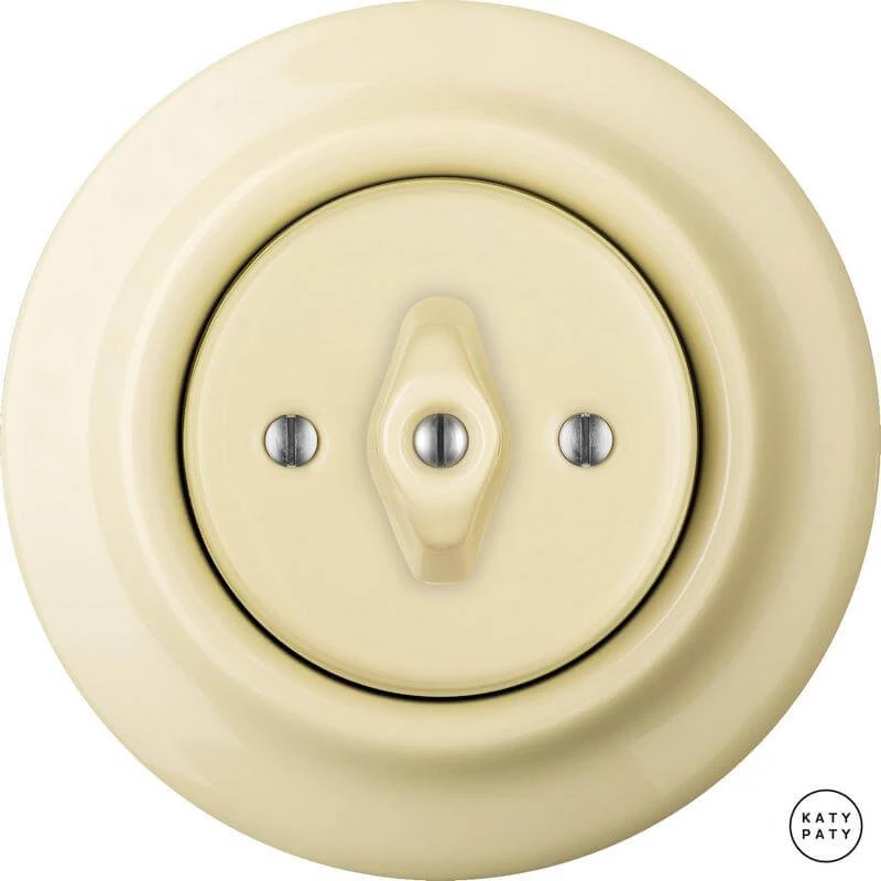 Ретро выключатель PNFLGdm цвет ваниль от чешского бренда Katy Paty изготовлен вручную из фарфора. Данная модель выглядит презентабельно и отлично дополнит интерьер как в современном, так и в ретро стиле. Дизайнерский выключатель Katy Paty отличается функциональностью и простотой в использовании. Данная модель разработана с учётом всех современных требований и соответствует европейским стандартам.Винтажный выключатель PNFLGdm цвет ваниль прекрасно сочетается в комплектации с электротоварами для скрытого монтажа. Модель идёт в комплекте с фарфоровой рамкой, шурупы представлены в четырёх цветах на выбор: нержавейка, черный, серебро, латунь.