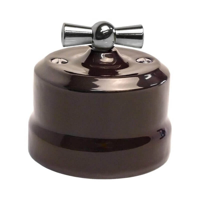 Ретро выключатель Verona Edisel цвет коричневый прекрасно подходит для винтажных интерьеров и лофт пространств. Выключатель поворотный KVChSw1-K03 Edisel отличного качества, он разработан с учётом всех современных требований, стандартов и ГОСТов. Данный ретро выключатель прекрасно сочетается в комплектации с проводами, изоляторами, розетками и распределительными коробками. Выключатель Edisel цвет коричневый выполнен в ретро стиле, что придает такому интерьерному аксессуару особый шарм!