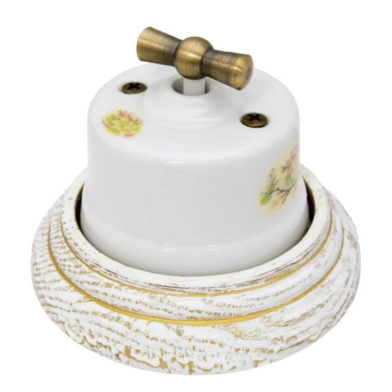 Ретро выключатель четырехпозиционный Salvador белого цвета с росписью яблоня прекрасно подходит для современных интерьерных решений. Винтажный выключатель Сальвадор OP21AP отменного качества. Он разработан с учётом всех современных требований, стандартов и ГОСТов.Белый - один из самых популярных цветов. Поэтому не удивительно, что такой ретро выключатель наиболее часто используется дизайнерами, как при классических интерьерных решениях, так и в стилях лофт, стимпанк, эко.Данный ретро выключатель прекрасно сочетается в комплектации с интерьерными ретро проводами, наружными латунными трубками или даже с внутренней скрытой проводкой. Белый выключатель Salvador с узором яблоня выполнен из фарфора и патинированной латуни, что придает такому интерьерному аксессуару особый шарм!