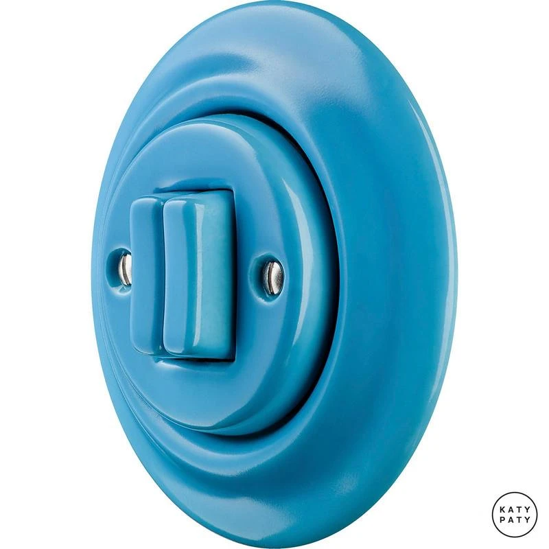 Ретро выключатель NIARG2Sl5 цвет ярко-синий от чешского бренда Katy Paty изготовлен вручную из фарфора. Данная модель выглядит презентабельно и отлично дополнит интерьер как в современном, так и в ретро стиле. Дизайнерский выключатель Katy Paty отличается функциональностью и простотой в использовании. Данная модель разработана с учётом всех современных требований и соответствует европейским стандартам.Винтажный выключатель NIARG2Sl5 цвет ярко-синий прекрасно сочетается в комплектации с электротоварами для скрытого монтажа. Модель идёт в комплекте с фарфоровой рамкой, шурупы представлены в четырёх цветах на выбор: нержавейка, черный, серебро, латунь.