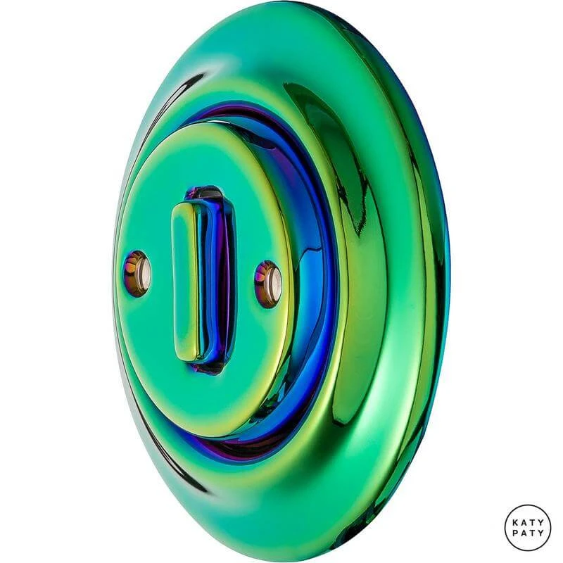 Ретро выключатель PECHGSl7 цвет зеленый металлик от чешского бренда Katy Paty изготовлен вручную из фарфора. Данная модель выглядит презентабельно и отлично дополнит интерьер как в современном, так и в ретро стиле. Дизайнерский выключатель Katy Paty отличается функциональностью и простотой в использовании. Данная модель разработана с учётом всех современных требований и соответствует европейским стандартам.Винтажный выключатель PECHGSl7 цвет зеленый металлик прекрасно сочетается в комплектации с электротоварами для скрытого монтажа. Модель идёт в комплекте с фарфоровой рамкой, шурупы представлены в четырёх цветах на выбор: нержавейка, черный, серебро, латунь.