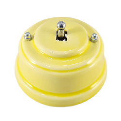Ретро выключатель ЛЕАНЗА ВРПЖС желтый представляет отличное решение для современных интерьеров. Данная модель выключателя особенно популярна в интерьерах в стилях лофт, стимпанк и минимализм. Выключатель ЛЕАНЗА отвечает всем необходимым стандартам и ГОСТам, имеет высочайшее качество, подтверждённое сертификатами соответствия.Человек с чувством вкуса при выборе электрики не пройдёт без интереса мимо ретро выключателей LEANZA. Винтажный желтый выключатель отлично сочетается в комплектации с наружной ретро проводкой, ретро изоляторами и распаечной коробкой.Таким образом, приобретая комплект ретро электрики Вы получаете не только электрификацию Вашего дома, но и отличное декоративное решение!