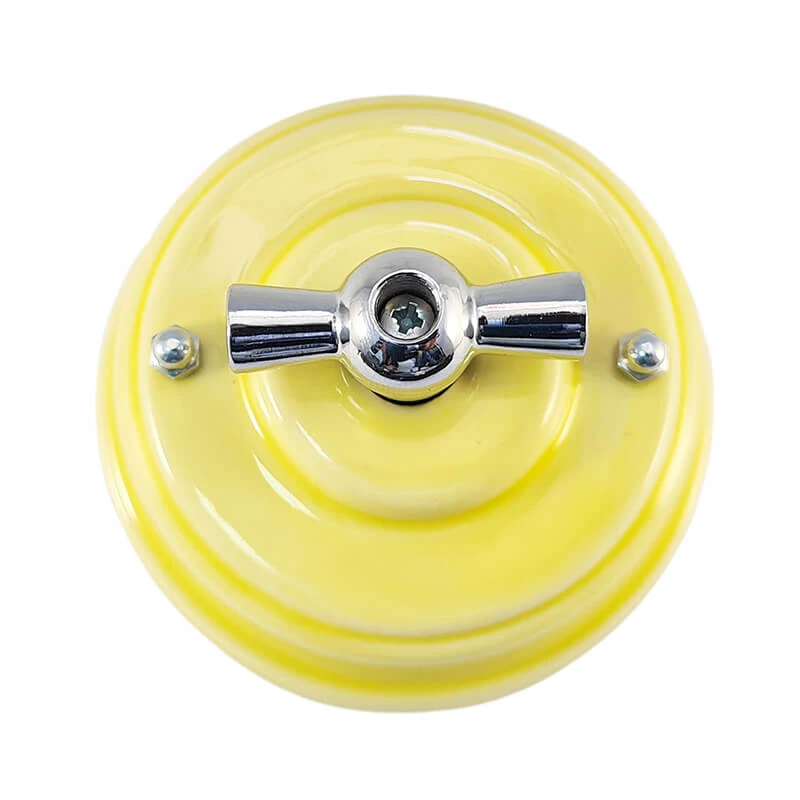 Ретро выключатель ЛЕАНЗА ВП2ЖС желтый представляет отличное решение для современных интерьеров. Данная модель выключателя особенно популярна в интерьерах в стилях лофт, стимпанк и минимализм. Выключатель ЛЕАНЗА отвечает всем необходимым стандартам и ГОСТам, имеет высочайшее качество, подтверждённое сертификатами соответствия.Человек с чувством вкуса при выборе электрики не пройдёт без интереса мимо ретро выключателей ЛЕАНЗА. Винтажный желтый выключатель отлично сочетается в комплектации с наружной ретро проводкой, ретро изоляторами и распаечной коробкой.Таким образом, приобретая комплект ретро электрики Вы получаете не только электрификацию Вашего дома, но и отличное декоративное решение!