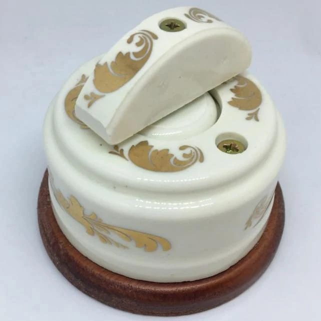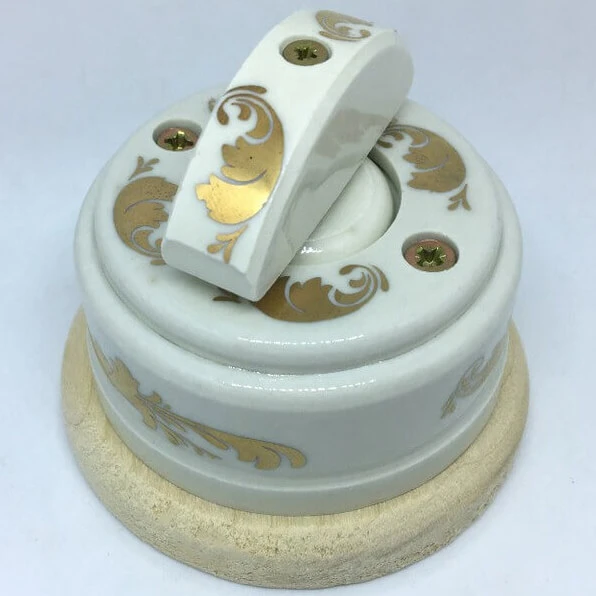Ретро выключатель ЦИОН 2-х позиционный цвет золото прекрасно подходит для современных интерьерных решений. Винтажный выключатель ЦИОН В1П-З отменного качества. Он разработан с учётом всех современных требований, стандартов и ГОСТов.Так как золото - один из самых популярных цветов. Поэтому не удивительно, что такой ретро выключатель наиболее часто используется дизайнерами, как при классических интерьерных решениях, так и в стилях лофт, стимпанк, эко. Данный ретро выключатель прекрасно сочетается в комплектации с интерьерными ретро проводами, наружными латунными трубками или даже с внутренней скрытой проводкой. Выключатель ЦИОН цвета золото выполнен из керамики и патинированной латуни, что придает такому интерьерному аксессуару особый шарм!'