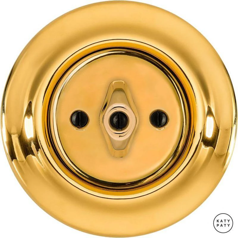 Ретро выключатель OPAUG1 цвет золотой глянцевый от чешского бренда Katy Paty изготовлен вручную из фарфора. Данная модель выглядит презентабельно и отлично дополнит интерьер как в современном, так и в ретро стиле. Дизайнерский выключатель Katy Paty отличается функциональностью и простотой в использовании. Данная модель разработана с учётом всех современных требований и соответствует европейским стандартам.Винтажный выключатель OPAUG1 цвет золотой глянцевый прекрасно сочетается в комплектации с электротоварами для скрытого монтажа. Модель идёт в комплекте с фарфоровой рамкой, шурупы представлены в четырёх цветах на выбор: нержавейка, черный, серебро, латунь.
