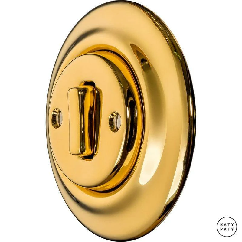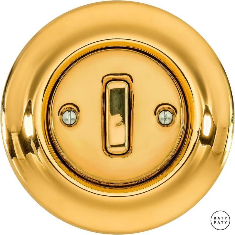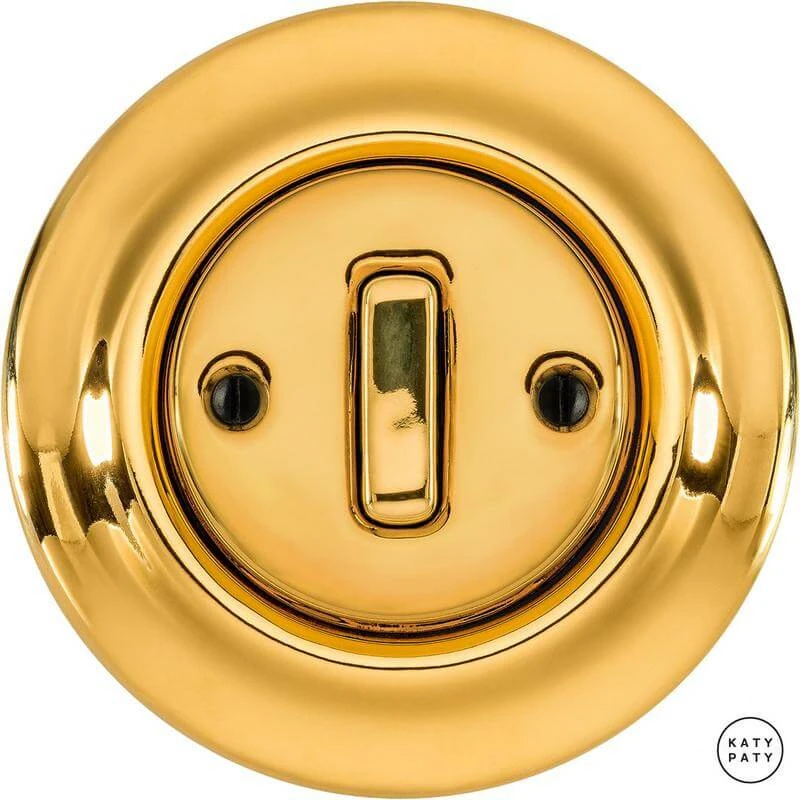 Ретро выключатель OPAUGSl1 цвет золотой глянцевый от чешского бренда Katy Paty изготовлен вручную из фарфора. Данная модель выглядит презентабельно и отлично дополнит интерьер как в современном, так и в ретро стиле. Дизайнерский выключатель Katy Paty отличается функциональностью и простотой в использовании. Данная модель разработана с учётом всех современных требований и соответствует европейским стандартам.Винтажный выключатель OPAUGSl1 цвет золотой глянцевый прекрасно сочетается в комплектации с электротоварами для скрытого монтажа. Модель идёт в комплекте с фарфоровой рамкой, шурупы представлены в четырёх цветах на выбор: нержавейка, черный, серебро, латунь.