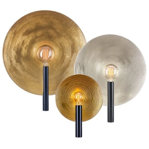 Светильники Orbis от Sun-Lumen имеют простой дизайн: модели состоят из цилиндрического основания, к которому крепится плафон, напоминающий по форме рельефную тарелочку. Бра представлены в трёх диаметрах: 300, 450 и 600 мм. Каждый размер можно заказать в серебре, сусальном золоте и потали. Светильники привлекут к себе внимание и займут центральное место в интерьере квартиры, офиса или кафе.