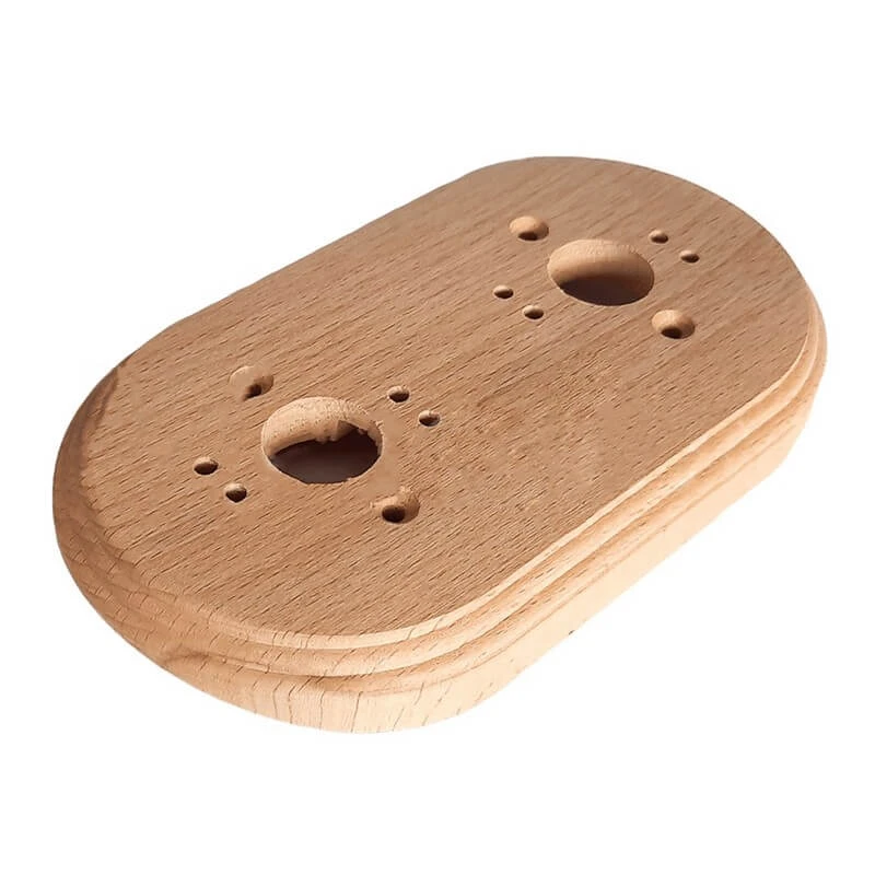 Накладки на бревно от бренда "МезонинЪ" дополнены с внутренней стороны отверстиями и пропилом. Они служат для удобства монтажа и эстетичного вида коммутации проводов. Предусмотрены все необходимые крепежные отверстия для механизма и изделия, что упрощает монтаж розеток и выключателей.